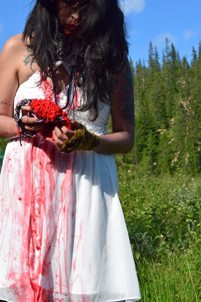 The process of making these pieces demanded going through my personal- and family history. I researched personal documents and explored alternative materials, such as materials derived from the human body, or actual everyday clothing from deceased family members. The process was harsh, painful and long. Yet, the outcome aimed to be festive with the struggle perceived as strength gained.
