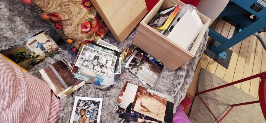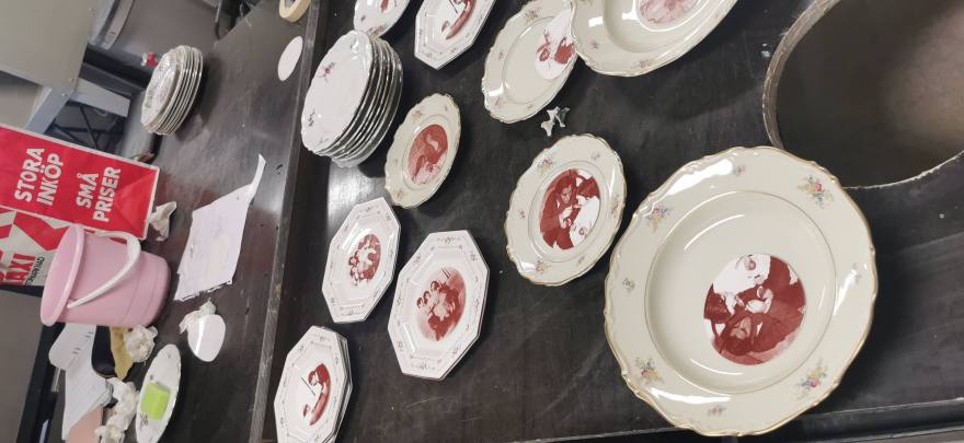 Para Cosmonación, trabajé con el archivo familiar de Valeria Montti Colque, escaneando Polaroids y notas manuscritas de los primeros años de exilio de su familia de Chile a Suecia. Seleccioné y edité estas imágenes —junto con otros materiales digitales— para luego diseñar calcomanías cerámicas (decals). Investigé el proceso de transferencia en colaboración con colegas especializados en técnicas de vidrio y con un ceramista de Väckelsång, experto en este procedimiento. Al “quemar” los decals en monocromo y fusionar las imágenes con las texturas y colores originales de los platos cerámicos preexistentes, la obra generó narrativas superpuestas de historia, materialidad y afecto.
