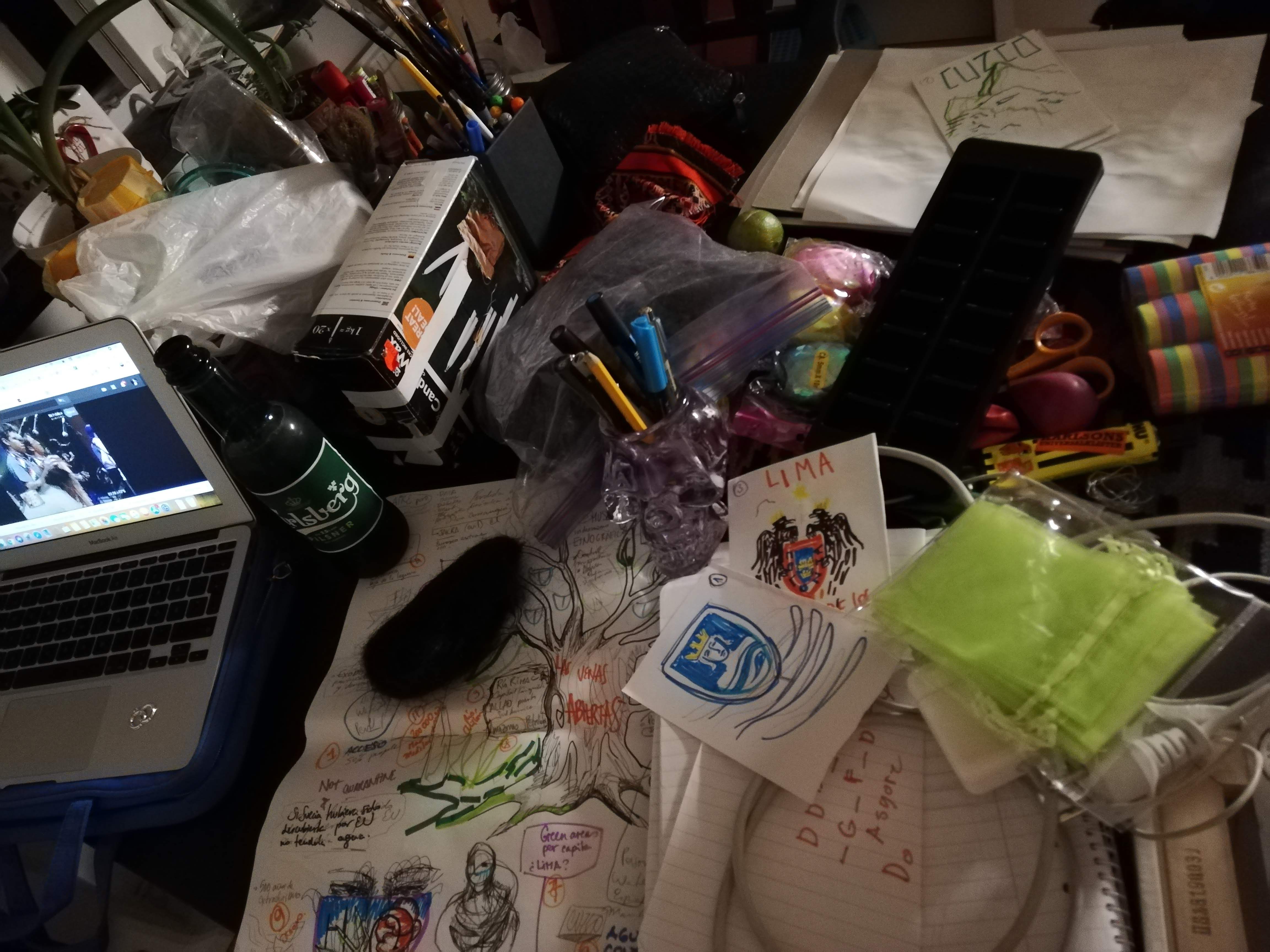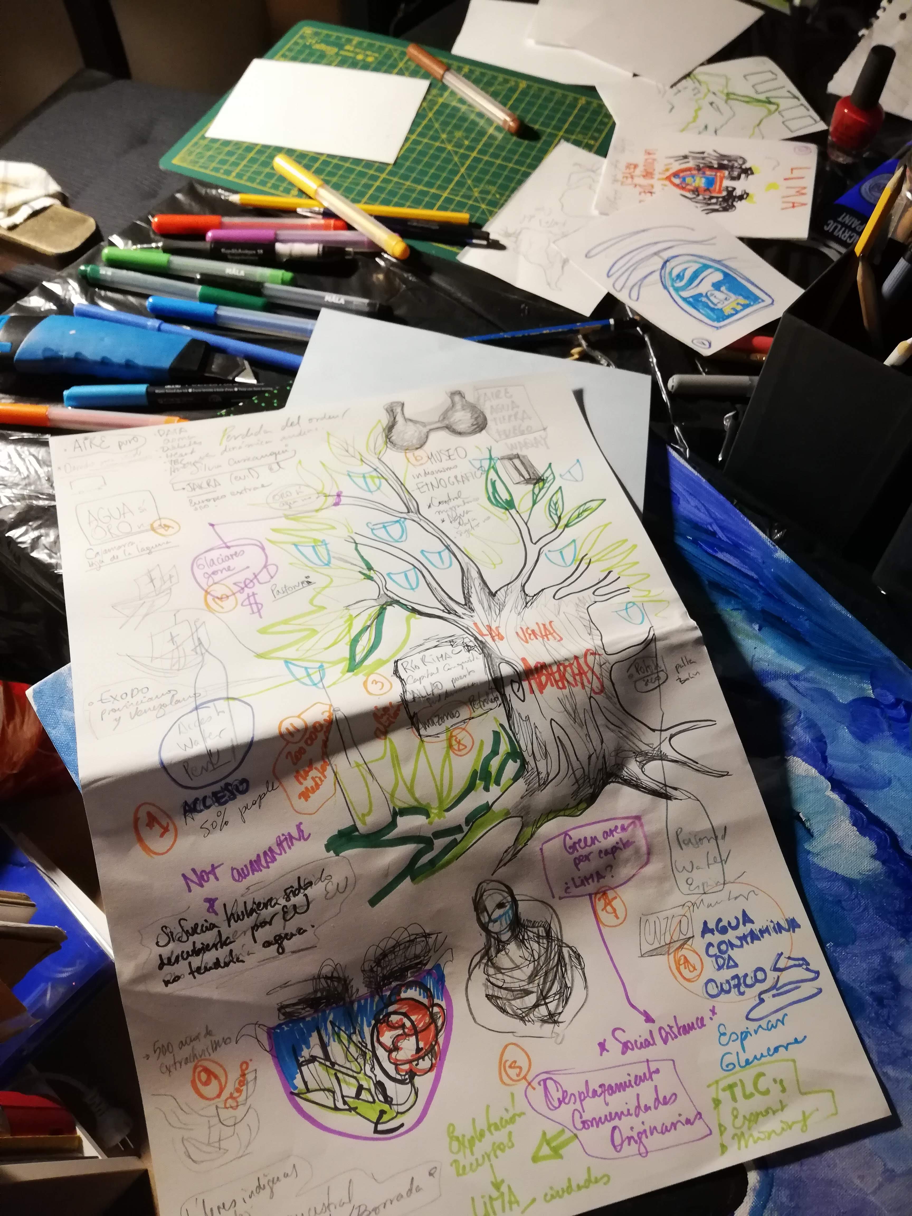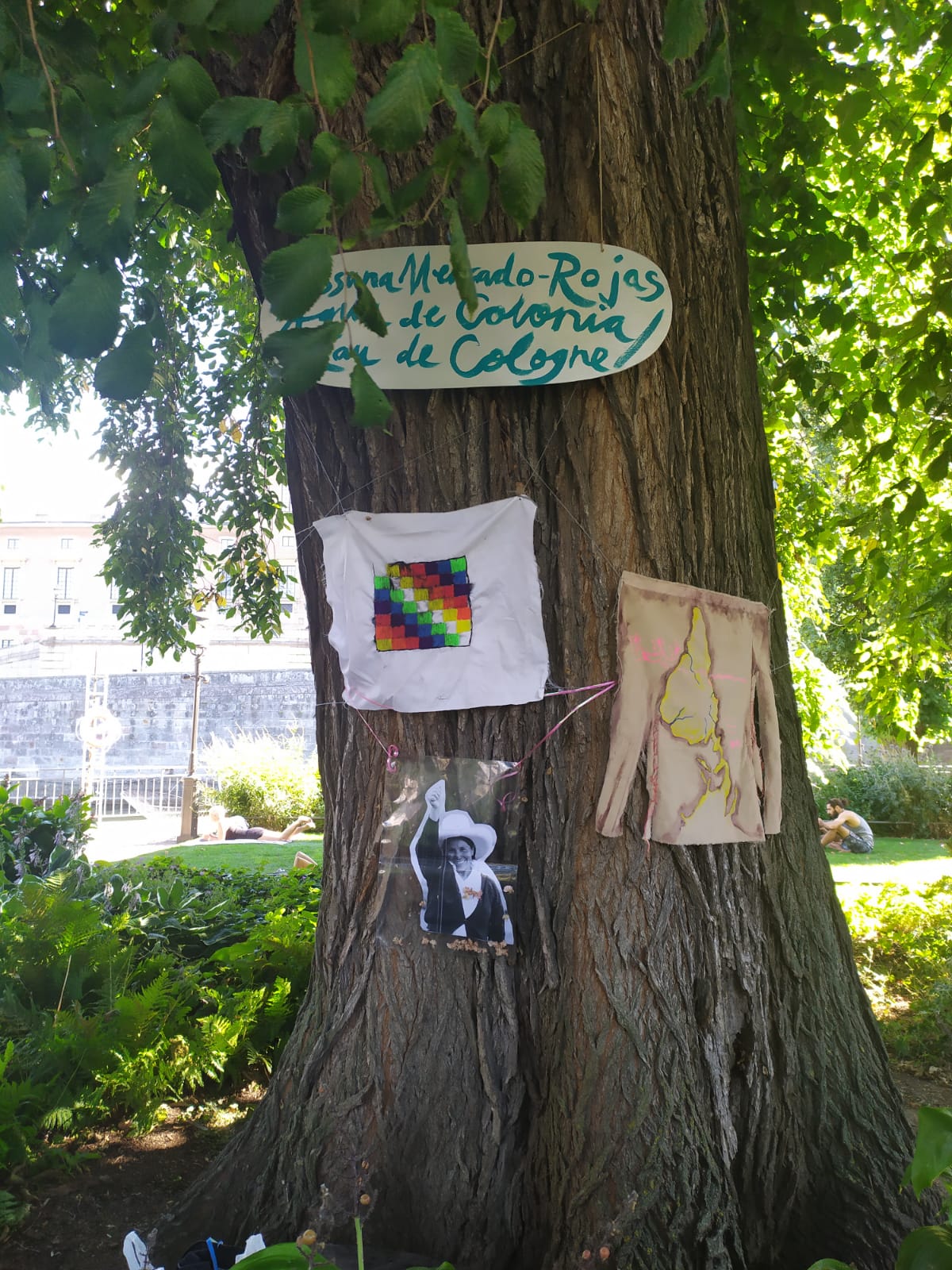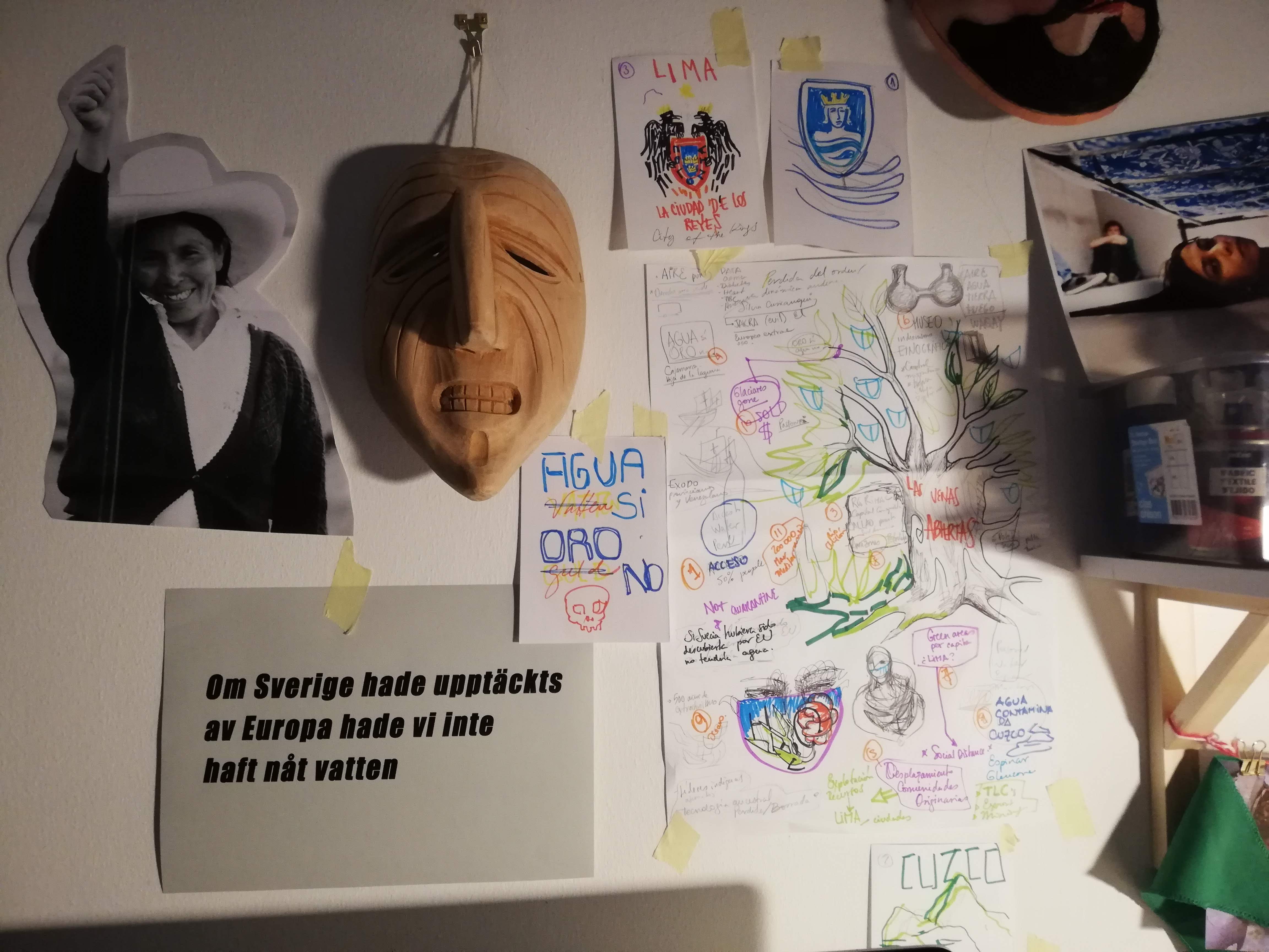 Through different items displayed in the form of a Yunza, a traditional festivity from the andes of Peru where a tree is decorated with presents and colorful decoration as a celebration during the rain-months, the visitors and I were able to talk about water and colonialism, development, access to water and sanitation, displacement of (indigenous) communities, green capitalism, extractivism and pandemias; and what would have happened if the north would be in the south, and the global south in the north.