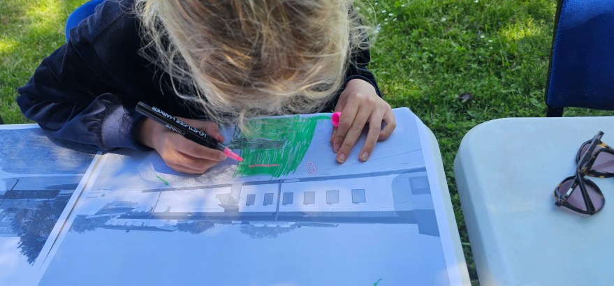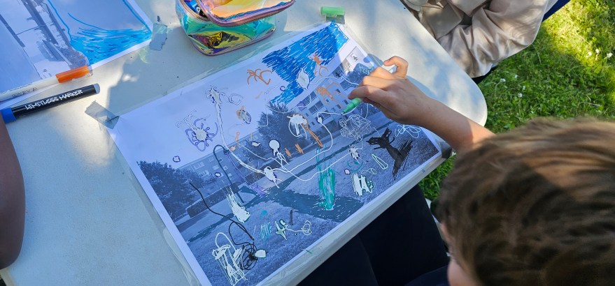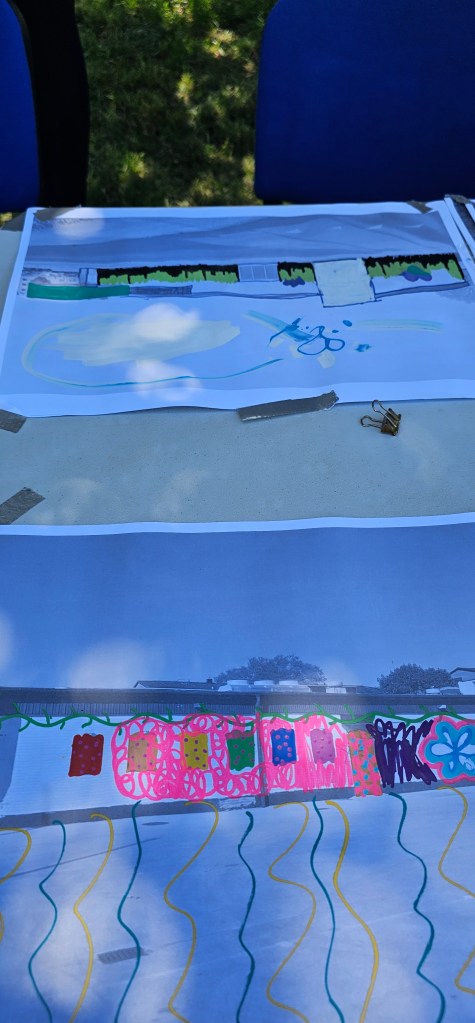 It focused on drawing and expressing ideas about the environments in Bingeby, as part of the preparation for the mural. Participation of Siri Iversen-Ejve.