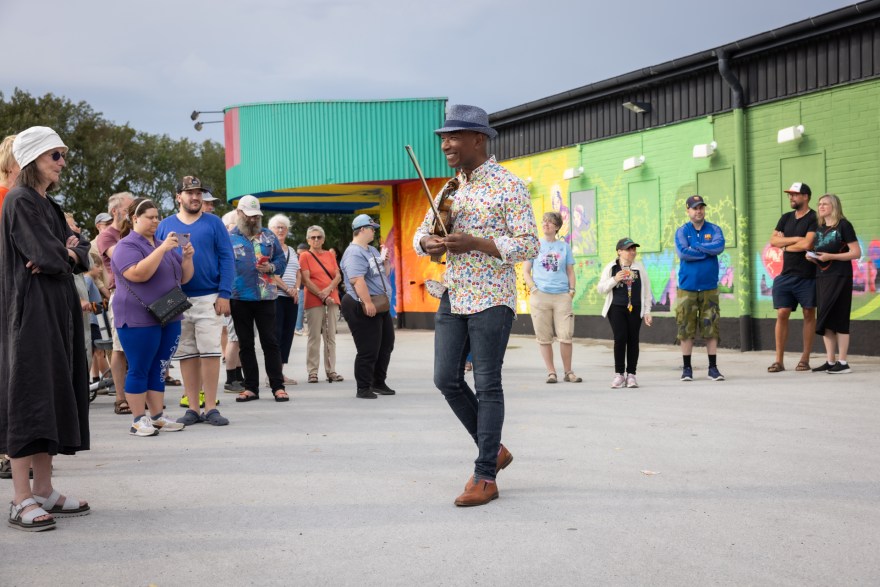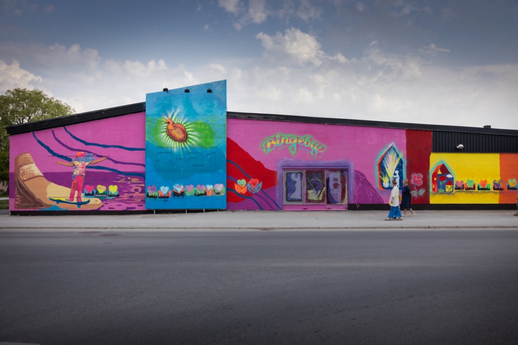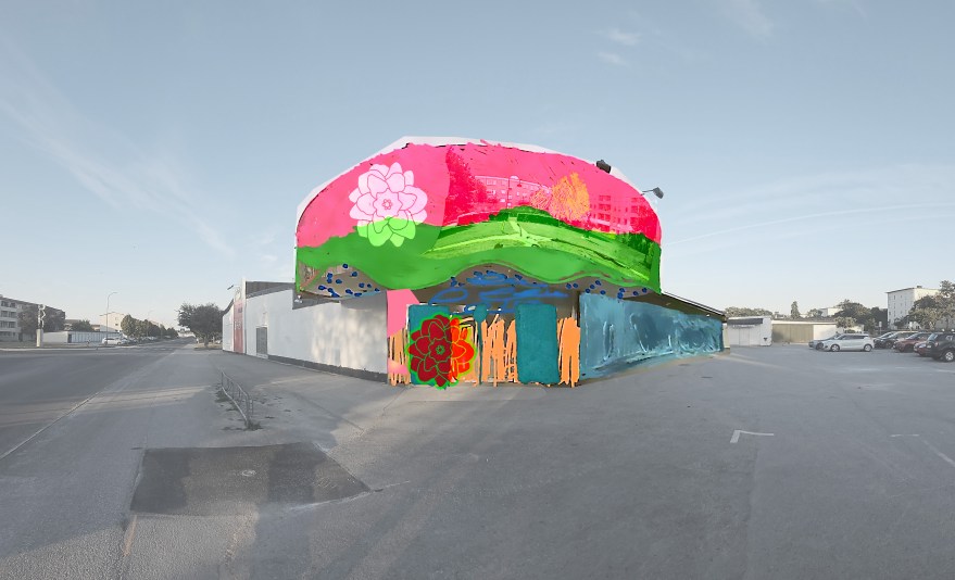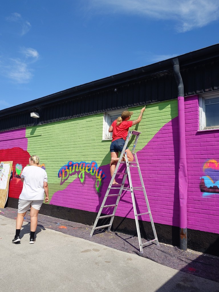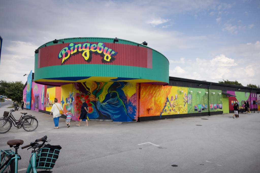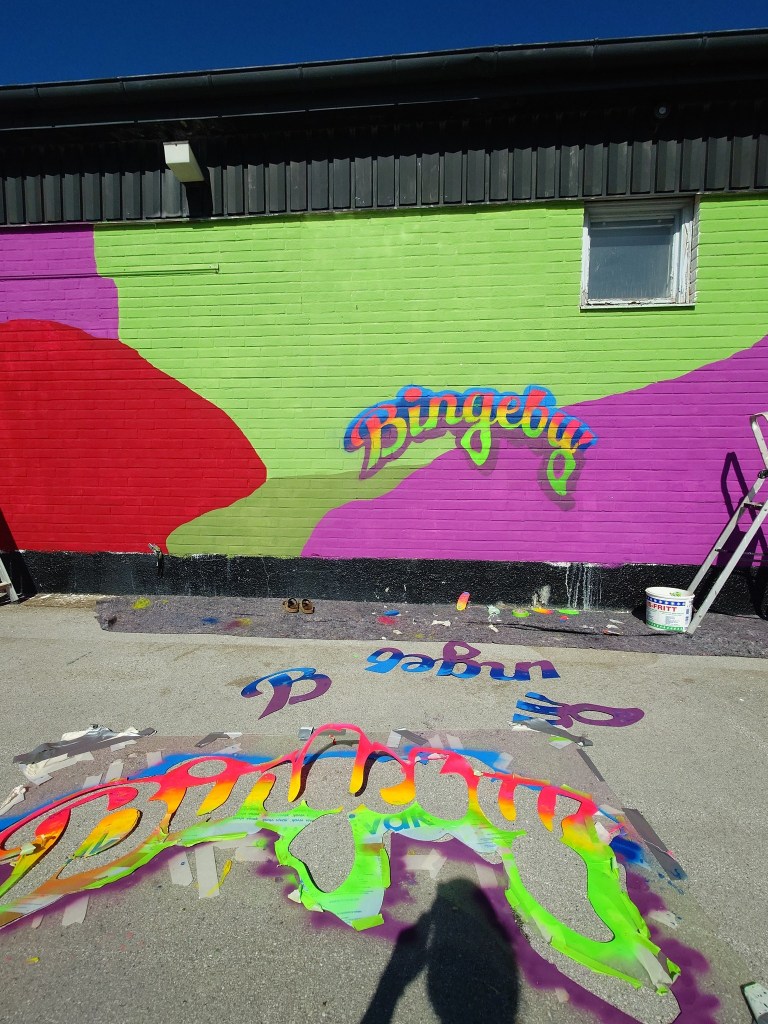 The design for the mural was inspired by workshops carried out with Bingeby residents. In these workshops, people were encouraged to share their stories, memories, dreams, and visions for the future of the place—material that I then wove into the artwork. For this mural assignment, the preparation required several meetings and dialogues after the workshop in November last year.