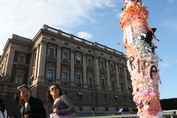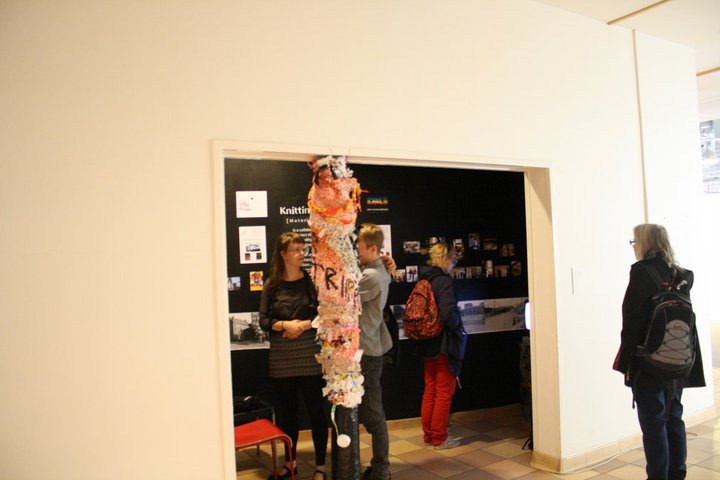 Stickkontakt had a ‘knitted saying’ on the abrupt changes in everyday life in Sweden after the political reforms regarding public health insurance (in 2012) which meant that people have been transferred from the health insurance system to the unemployment system without getting proper assessment and rehabilitation regarding work capacity. This has in many cases caused the deterioration of their condition and in some cases even led to suicides. The group held a knitting meeting during Påskuppropet, a demonstration against the health security reforms, where they started planning the piece they constructed for this project.