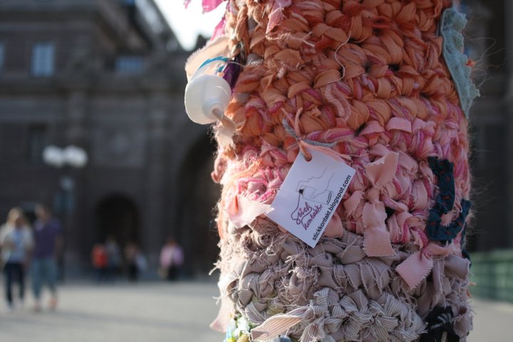 Stickkontakt have been working undercover for several years given the strict restrictions around the city of Stockholm. They were a feminist collective looking to ‘disrupt’ the routine or unfamiliarity of the inhabitants of the city by placing knitted/crocheted pieces in different areas. This gesture takes a handicraft work, linked to the feminine and domestic, and decontextualizes it by taking it out to the public space, predominantly male. With this externalization, they reclaim and revalue the action of knitting, giving it a hybrid identity. Stickkontakt is not active anymore.